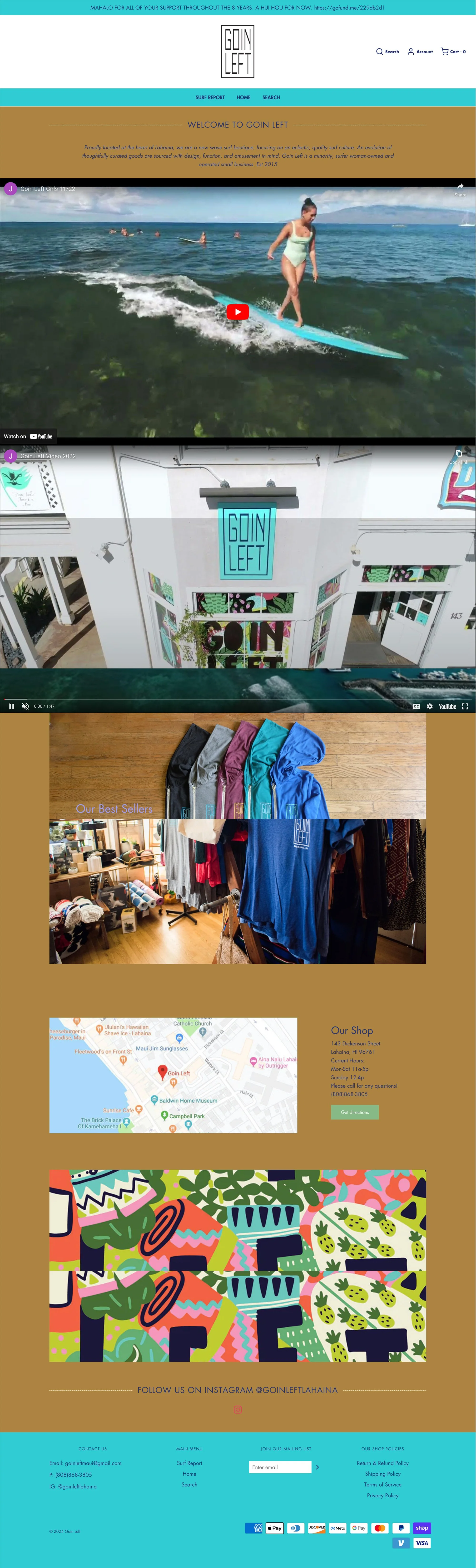 Goin Left is Lahaina's eclectic surf brand + boutique, cultivating a longboarding surf culture by inspiring a creative style of living